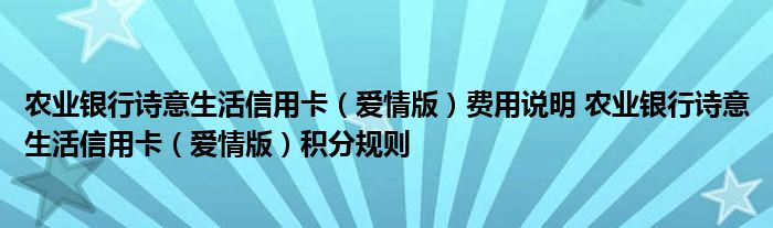 二、农业银行诗意生活信用卡(爱情版)积分规则