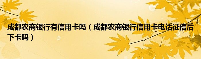 导读 大家好,小元来为大家解答问题。成都农商银行有信用卡吗,成都农商银行信用卡电话征信后下卡吗这个很多人还不知道,现在让我们一起来了解下