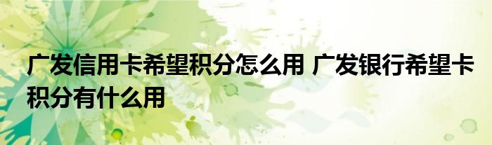 导读 大家好,小元来为大家解答问题。广发信用卡希望积分怎么用,广发银行希望卡积分有什么用这个很多人还不知道,现在让我们一起来了解下吧!