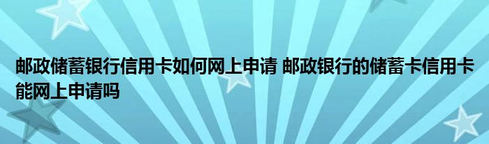 导读 大家好,小元来为大家解答问题。邮政储蓄银行信用卡如何网上申请,邮政银行的储蓄卡信用卡能网上申请吗这个很多人还不知道,现在让我们一起