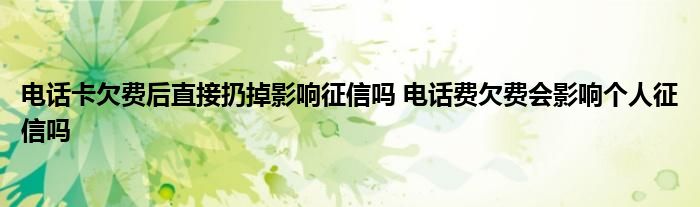 导读 大家好,小元来为大家解答问题。电话卡欠费后直接扔掉影响征信吗,电话费欠费会影响个人征信吗这个很多人还不知道,现在让我们一起来了解下