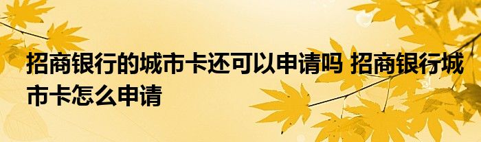 导读 大家好,小元来为大家解答问题。招商银行的城市卡还可以申请吗,招商银行城市卡怎么申请这个很多人还不知道,现在让我们一起来了解下吧!