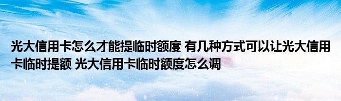 导读 大家好,小元来为大家解答问题。光大信用卡怎么才能提临时额度,有几种方式可以让光大信用卡临时提额,光大信用卡临时额度怎么调这个很多人