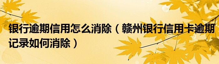 导读 大家好,小元来为大家解答问题。银行逾期信用怎么消除,赣州银行信用卡逾期记录如何消除这个很多人还不知道,现在让我们一起来了解下吧!
