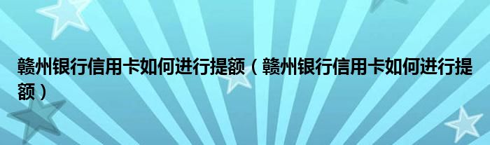 导读 大家好,小元来为大家解答问题。赣州银行信用卡如何进行提额,赣州银行信用卡如何进行提额这个很多人还不知道,现在让我们一起来了解下吧!