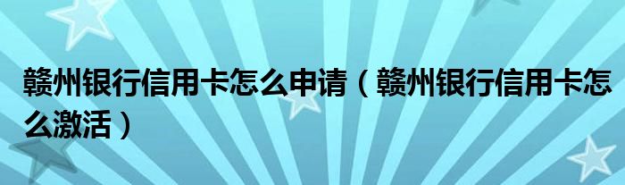 导读 大家好,小元来为大家解答问题。赣州银行信用卡怎么申请,赣州银行信用卡怎么激活这个很多人还不知道,现在让我们一起来了解下吧!
