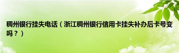 大家好,小元来为大家解答问题。稠州银行挂失电话,浙江稠州银行信用卡挂失补办后卡号变吗?这个很多人还不知道,现在让我们一起来了解下吧!