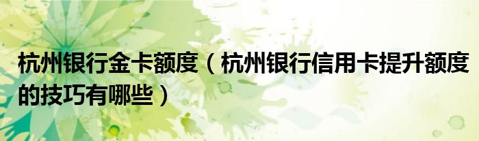 导读 大家好,小元来为大家解答问题。杭州银行金卡额度,杭州银行信用卡提升额度的技巧有哪些这个很多人还不知道,现在让我们一起来了解下吧!杭