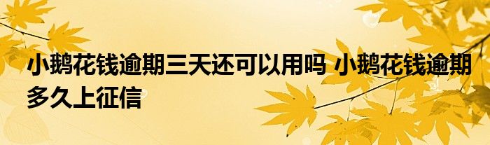 导读 大家好,小元来为大家解答问题。小鹅花钱逾期三天还可以用吗,小鹅花钱逾期多久上征信这个很多人还不知道,现在让我们一起来了解下吧!