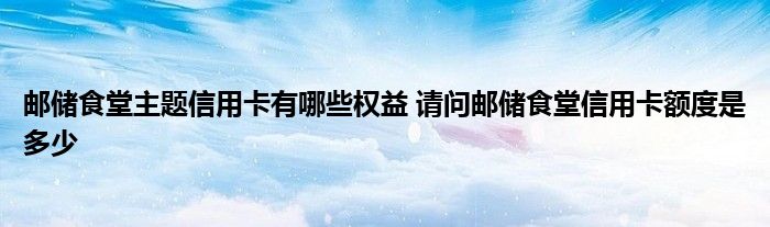 导读 大家好,小元来为大家解答问题。邮储食堂主题信用卡有哪些权益,请问邮储食堂信用卡额度是多少这个很多人还不知道,现在让我们一起来了解下