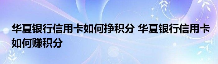 导读 大家好,小元来为大家解答问题。华夏银行信用卡如何挣积分,华夏银行信用卡如何赚积分这个很多人还不知道,现在让我们一起来了解下吧!