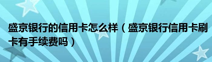 导读 大家好,小元来为大家解答问题。盛京银行的信用卡怎么样,盛京银行信用卡刷卡有手续费吗这个很多人还不知道,现在让我们一起来了解下吧!按