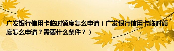 导读 大家好,小元来为大家解答问题。广发银行信用卡临时额度怎么申请,广发银行信用卡临时额度怎么申请?需要什么条件?这个很多人还不知道,现