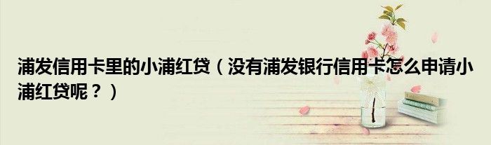 导读 大家好,小元来为大家解答问题。浦发信用卡里的小浦红贷,没有浦发银行信用卡怎么申请小浦红贷呢?这个很多人还不知道,现在让我们一起来了