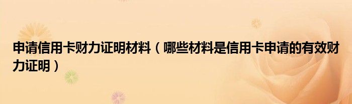 导读 大家好,小元来为大家解答问题。申请信用卡财力证明材料,哪些材料是信用卡申请的有效财力证明这个很多人还不知道,现在让我们一起来了解下