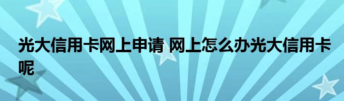 导读 大家好,小元来为大家解答问题。光大信用卡网上申请,网上怎么办光大信用卡呢这个很多人还不知道,现在让我们一起来了解下吧!
