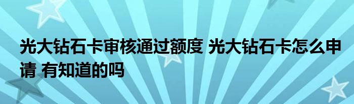 导读 大家好,小元来为大家解答问题。光大钻石卡审核通过额度,光大钻石卡怎么申请,有知道的吗这个很多人还不知道,现在让我们一起来了解下吧!