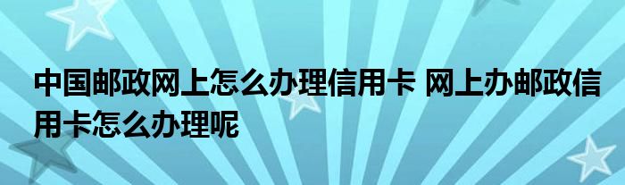 导读 大家好,小元来为大家解答问题。中国邮政网上怎么办理信用卡,网上办邮政信用卡怎么办理呢这个很多人还不知道,现在让我们一起来了解下吧!