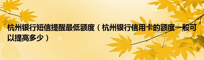 导读 大家好,小元来为大家解答问题。杭州银行短信提醒最低额度,杭州银行信用卡的额度一般可以提高多少这个很多人还不知道,现在让我们一起来了