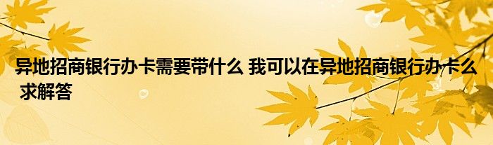 导读 大家好,小元来为大家解答问题。异地招商银行办卡需要带什么,我可以在异地招商银行办卡么,求解答这个很多人还不知道,现在让我们一起来了