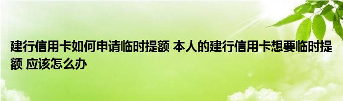 导读 大家好,小元来为大家解答问题。建行信用卡如何申请临时提额,本人的建行信用卡想要临时提额,应该怎么办这个很多人还不知道,现在让我们一