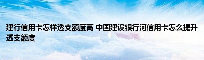 大家好,小元来为大家解答问题。建行信用卡怎样透支额度高,中国建设银行河信用卡怎么提升透支额度这个很多人还不知道,现在让我们一起来了解下吧!