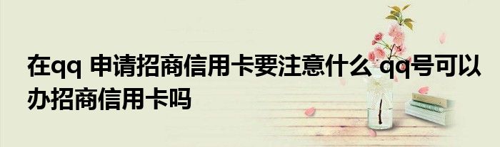 导读 大家好,小元来为大家解答问题。在qq,申请招商信用卡要注意什么,qq号可以办招商信用卡吗这个很多人还不知道,现在让我们一起来了解下吧!