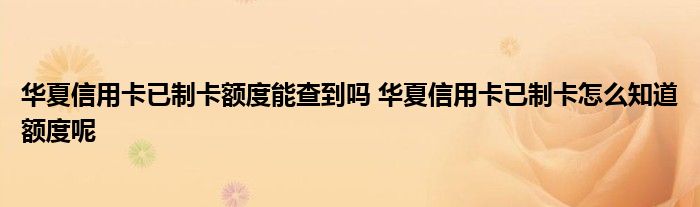 导读 大家好,小元来为大家解答问题。华夏信用卡已制卡额度能查到吗,华夏信用卡已制卡怎么知道额度呢这个很多人还不知道,现在让我们一起来了解