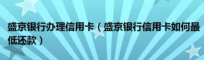 大家好,小元来为大家解答问题。盛京银行办理信用卡,盛京银行信用卡如何最低还款这个很多人还不知道,现在让我们一起来了解下吧!