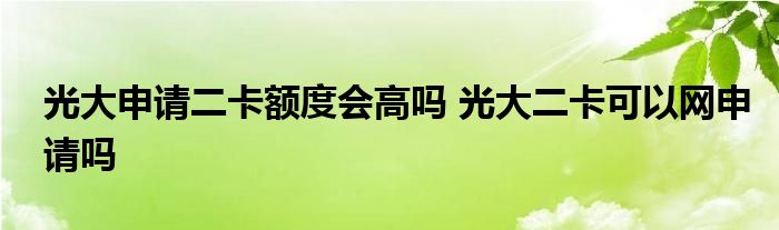 导读 大家好,小元来为大家解答问题。光大申请二卡额度会高吗,光大二卡可以网申请吗这个很多人还不知道,现在让我们一起来了解下吧!
