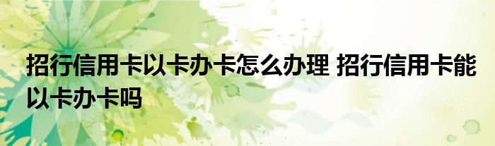 导读 大家好,小元来为大家解答问题。招行信用卡以卡办卡怎么办理,招行信用卡能以卡办卡吗这个很多人还不知道,现在让我们一起来了解下吧!