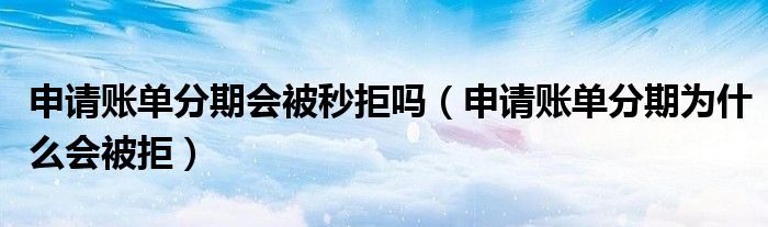 导读 大家好,小元来为大家解答问题。申请账单分期会被秒拒吗,申请账单分期为什么会被拒这个很多人还不知道,现在让我们一起来了解下吧!