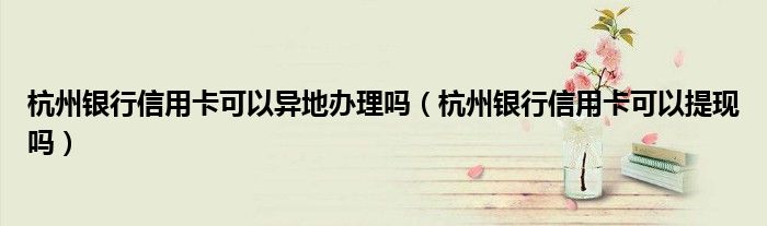 导读 大家好,小元来为大家解答问题。杭州银行信用卡可以异地办理吗,杭州银行信用卡可以提现吗这个很多人还不知道,现在让我们一起来了解下吧!