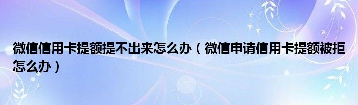 导读 大家好,小元来为大家解答问题。微信信用卡提额提不出来怎么办,微信申请信用卡提额被拒怎么办这个很多人还不知道,现在让我们一起来了解下
