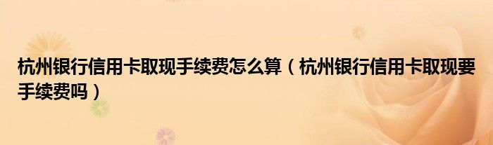 导读 大家好,小元来为大家解答问题。杭州银行信用卡取现手续费怎么算,杭州银行信用卡取现要手续费吗这个很多人还不知道,现在让我们一起来了解