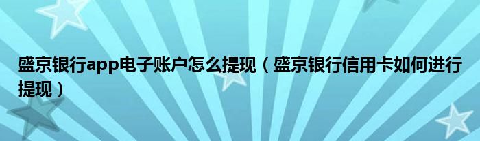 导读 大家好,小元来为大家解答问题。盛京银行app电子账户怎么提现,盛京银行信用卡如何进行提现这个很多人还不知道,现在让我们一起来了解下吧!
