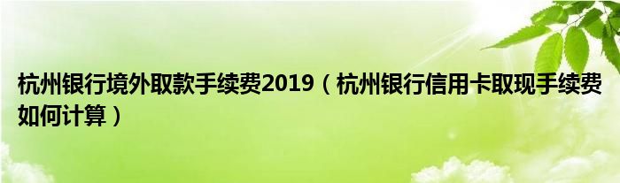 导读 大家好,小元来为大家解答问题。杭州银行境外取款手续费2019,杭州银行信用卡取现手续费如何计算这个很多人还不知道,现在让我们一起来了解