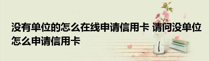 导读 大家好,小元来为大家解答问题。没有单位的怎么在线申请信用卡,请问没单位怎么申请信用卡这个很多人还不知道,现在让我们一起来了解下吧!