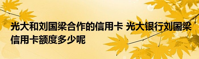 大家好,小元来为大家解答问题。光大和刘国梁合作的信用卡,光大银行刘国梁信用卡额度多少呢这个很多人还不知道,现在让我们一起来了解下吧!