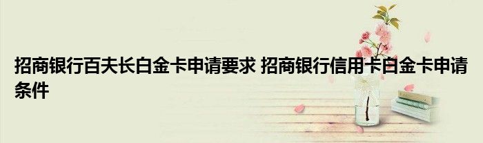 导读 大家好,小元来为大家解答问题。招商银行百夫长白金卡申请要求,招商银行信用卡白金卡申请条件这个很多人还不知道,现在让我们一起来了解下
