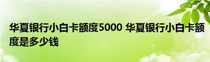 导读 大家好,小元来为大家解答问题。华夏银行小白卡额度5000,华夏银行小白卡额度是多少钱这个很多人还不知道,现在让我们一起来了解下吧!