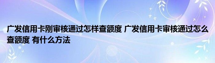 导读 大家好,小元来为大家解答问题。广发信用卡刚审核通过怎样查额度,广发信用卡审核通过怎么查额度,有什么方法这个很多人还不知道,现在让我