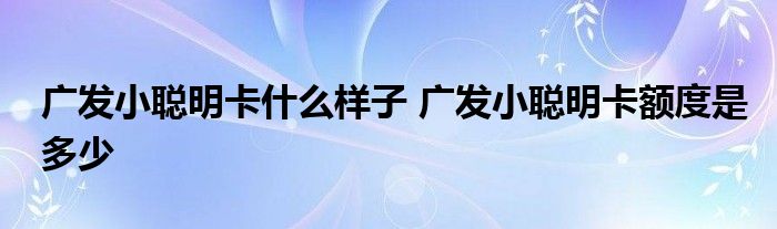 导读 大家好,小元来为大家解答问题。广发小聪明卡什么样子,广发小聪明卡额度是多少这个很多人还不知道,现在让我们一起来了解下吧!