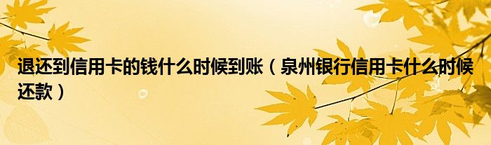 导读 大家好,小元来为大家解答问题。退还到信用卡的钱什么时候到账,泉州银行信用卡什么时候还款这个很多人还不知道,现在让我们一起来了解下吧