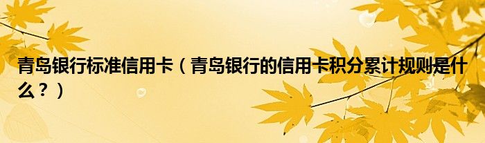导读 大家好,小元来为大家解答问题。青岛银行标准信用卡,青岛银行的信用卡积分累计规则是什么?这个很多人还不知道,现在让我们一起来了解下吧