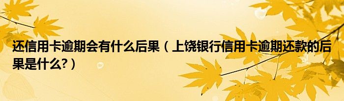 导读 大家好,小元来为大家解答问题。还信用卡逾期会有什么后果,上饶银行信用卡逾期还款的后果是什么?这个很多人还不知道,现在让我们一起来了解