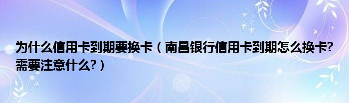导读 大家好,小元来为大家解答问题。为什么信用卡到期要换卡,南昌银行信用卡到期怎么换卡?需要注意什么?这个很多人还不知道,现在让我们一起来