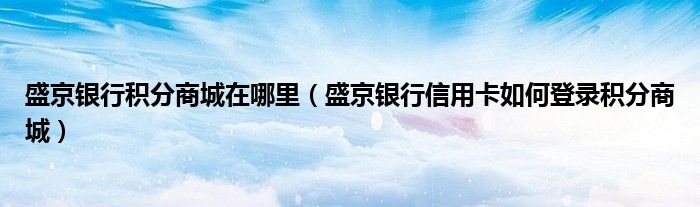 导读 大家好,小元来为大家解答问题。盛京银行积分商城在哪里,盛京银行信用卡如何登录积分商城这个很多人还不知道,现在让我们一起来了解下吧!