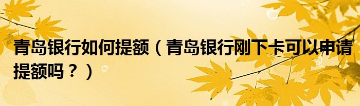 导读 大家好,小元来为大家解答问题。青岛银行如何提额,青岛银行刚下卡可以申请提额吗?这个很多人还不知道,现在让我们一起来了解下吧!