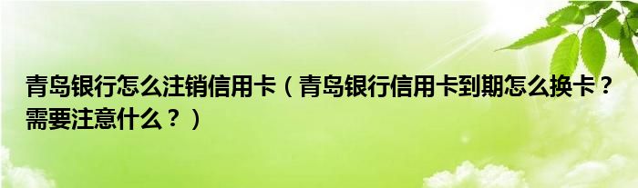 导读 大家好,小元来为大家解答问题。青岛银行怎么注销信用卡,青岛银行信用卡到期怎么换卡?需要注意什么?这个很多人还不知道,现在让我们一起